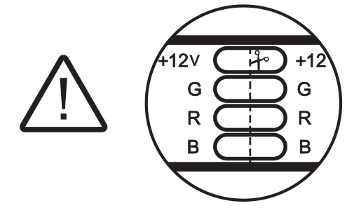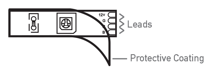 To connect LED strips to the Control Box, align the arrow on the “Power Out” cable to the top of the LED strip, marked “+12V”.